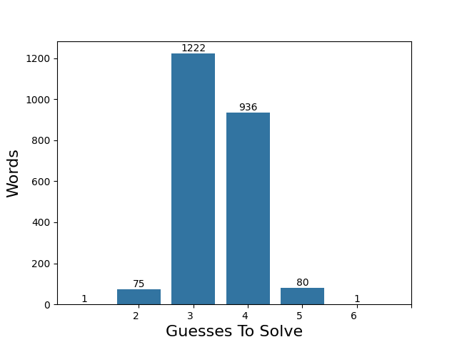 If you're just here to characterize my solver, I can save you some time. I ran it against the entire word list, and here's a graph